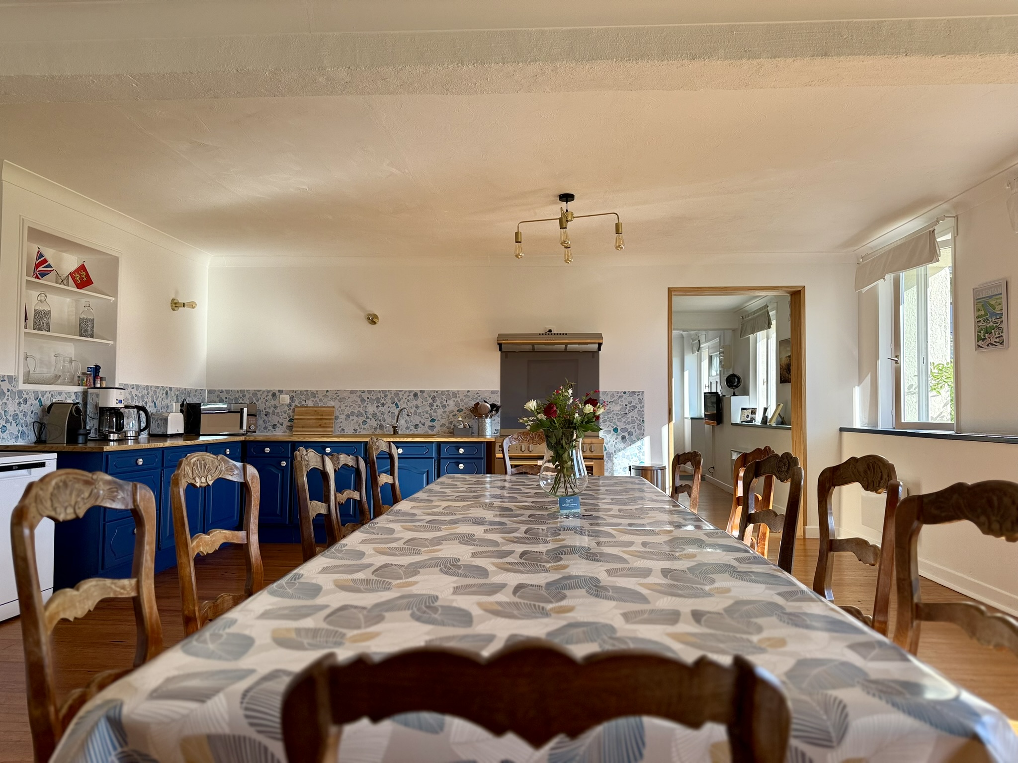 Ses équipements de cuisine, comme la cuisinière professionnelle, permettent de concocter aisément les repas de toute la tribu, et de les savourer autour de la grande table conviviale.